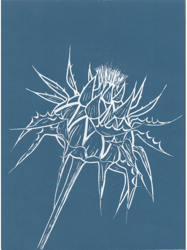 A single block original linocut featuring a milk thistle. Hand printed using a small relief press on Hosho Japanese paper. Please look closely at associated photograph before placing your order. Printed area measures 150 x 200mm.